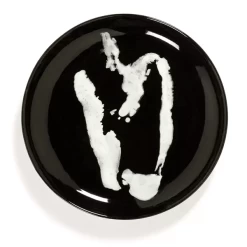 Het Serax Feast by Ottolenghi bord heeft een diameter van 19 cm en is 2 cm hoog. Het aardewerken bord is zwart van kleur met een witte schildering van een paprika.