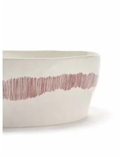 De Serax Feast by Ottolenghi saladekom heeft een diameter van 27,5 cm en is 9,5 cm hoog. De aardewerken kom is wit van kleur met een rode schildering.
