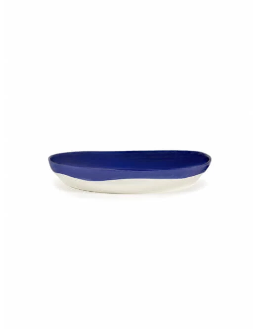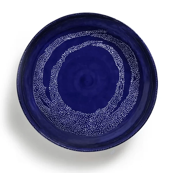 Het Serax Feast by Ottolenghi serveerschaal heeft een diameter van 30 cm en is 6 cm hoog. Het aardewerken bord is blauw van kleur en heeft een witte schildering.