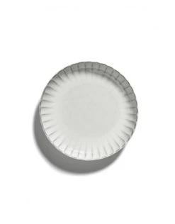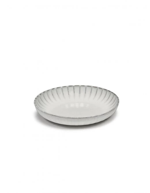Het hoge bord M van Serax INKU heeft een diameter van 21 cm, is 4 cm hoog en is aan de rand voorzien van een decoratief ribbelpatroon. De schaal is gemaakt van steengoed (aardewerk) en is wit geglazuurd. Gebruik voor het serveren van gerechten.