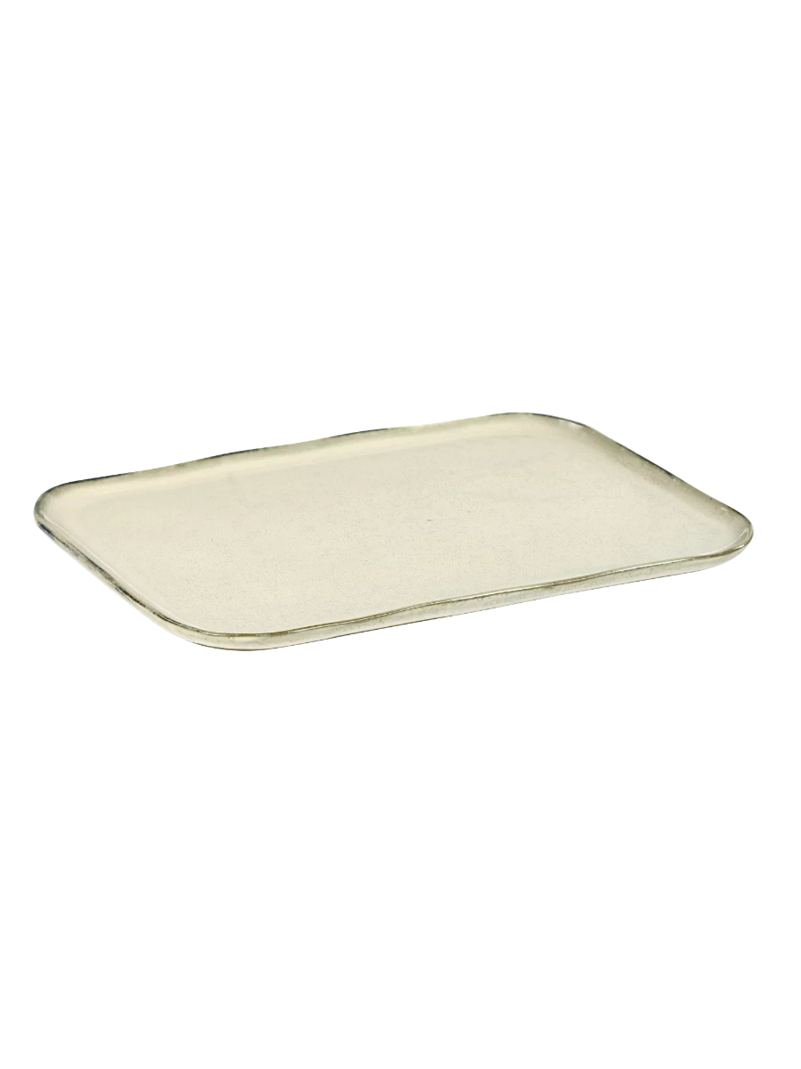 Het rechthoekige Merci bord van Serax is gemaakt van gebroken-witgeglazuurd zandsteen. Het bord is 32 cm lang, 23 cm breed en 1,4 cm hoog.