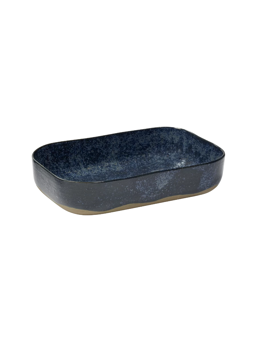 De rechthoekige Merci schaal van Serax is gemaakt van grijsblauw geglazuurd zandsteen. Deze schaal is 23 cm lang, 15 cm breed en 5 cm hoog.