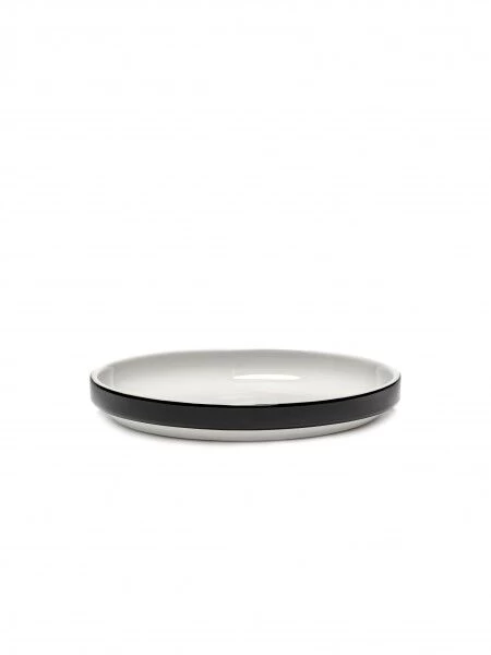 Het Serax Passe-Partout bord heeft een diameter van 18 cm en is 2,5 cm hoog. Het bord is gemaakt van wit porselein met een zwarte, glanzende buitenzijde. Ontworpen door Vincent van Duysen. Gebruik voor het serveren van het diner of andere maaltijden.