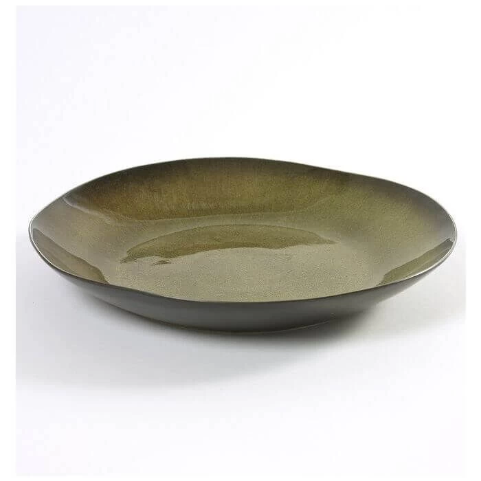 De Serax Pure schaal is gemaakt van groen keramiek. De schaal heeft een diameter van 32 cm en is 5 cm hoog. Ontworpen door Pascale Naessens. Voor het serveren van gerechten als salades.
