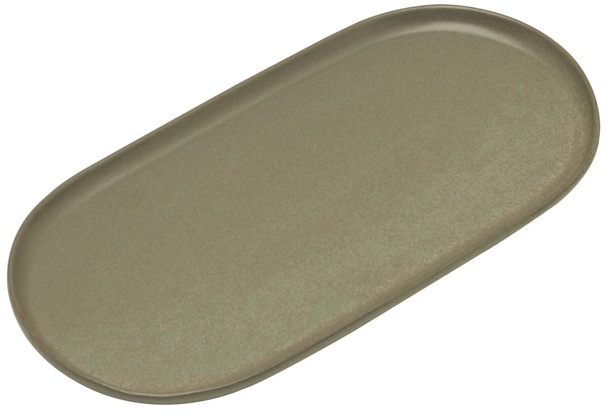 Het langwerpige Serax Surface by Sergio Herman tapas- of serveerbord is 35,5 cm lang en 17 cm breed. Het aardewerken bord is camogreen van kleur en heeft aan de buitenzijde een matte afwerking.