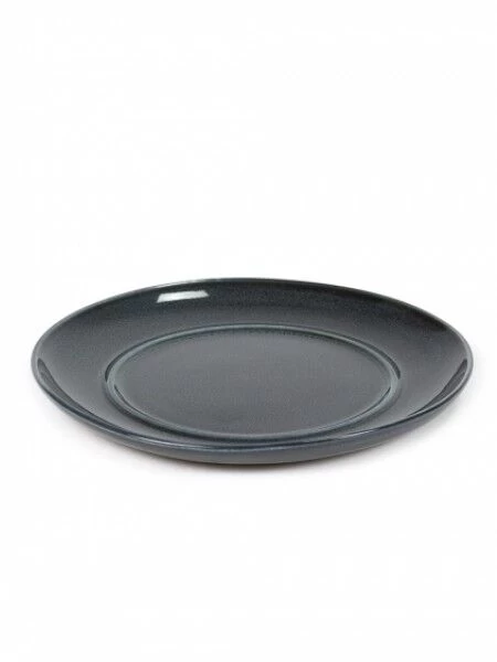 De Serax Terres de Rêves schotel voor een koffiekop van 8 cm heeft een diameter van 13,5 cm en is 1,2 cm hoog. De van stoneware gemaakte schotel is geglazuurd met donkerblauw email.